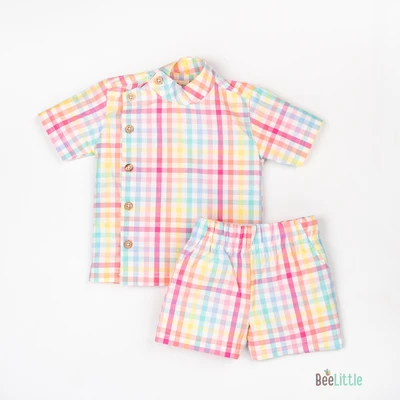 Beelittle side placket shirt and shorts set is a charming and practical outfit. Featuring a distinctive button-down side placket, making it easy to dress your little one. Crafted from soft, breathable fabric, this shirt ensures maximum comfort and freedom of movement. The elastic waistband shorts allow for quick diaper changes, making this versatile set both functional and adorable.