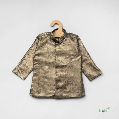 Peach Silk Metallic Tissue Kurta With Dhoti