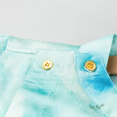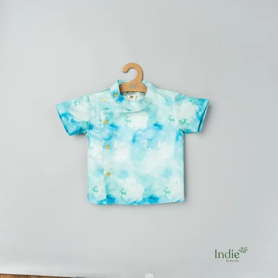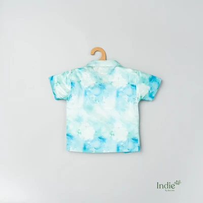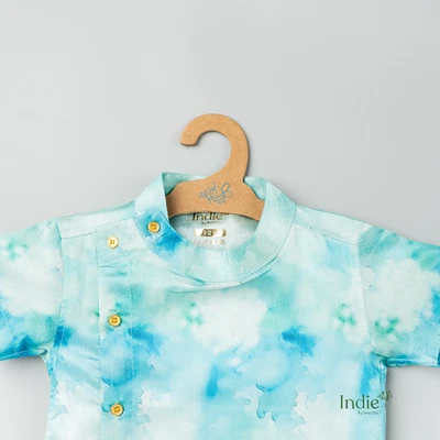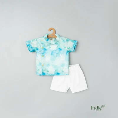 Blue Tie And Dye Side Placket Shirt With White Shorts