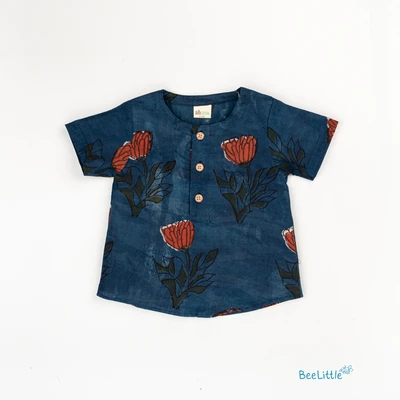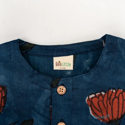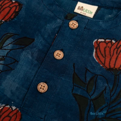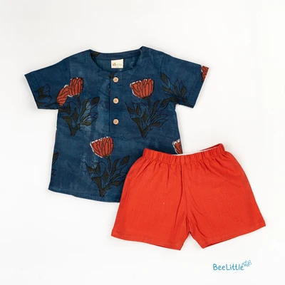 Mul Mul top and bottom set is the perfect blend of style and comfort. Featuring a mandarin collar, half sleeves, and vibrant ethnic print, the shirt is made with soft and breathable Mulmul fabric. The matching solid cotton shorts complete the look with a concealed elasticated waistband for a comfortable fit, creating an effortless outfit that's perfect for any occasion.