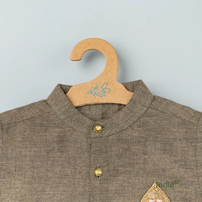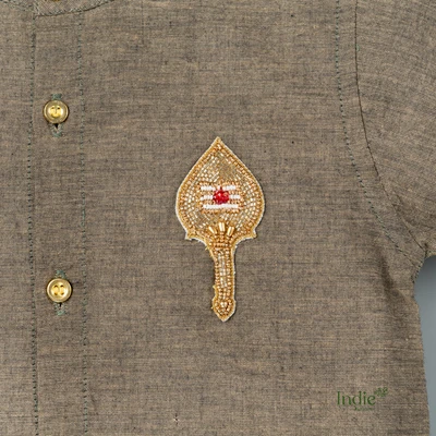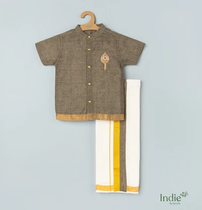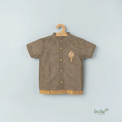 Brown Cotton Border With Vel Aari Shirt Paired With Dhoti