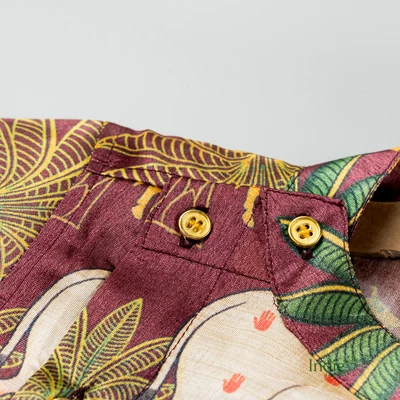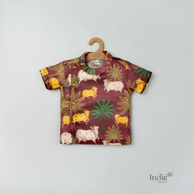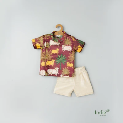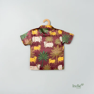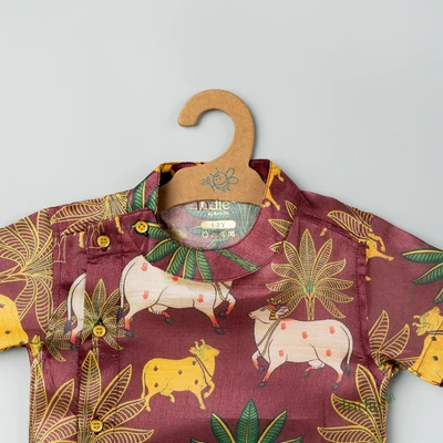 Brown Pichwai Side Placket Shirt With Sandal Shorts