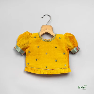 Butta Embroidered Yellow Puff Sleeve Top And Pleated Lehanga