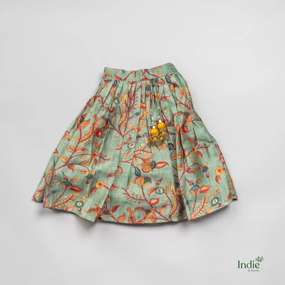 Floral Printed Orange Top And Teal Pleated Lehanga