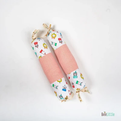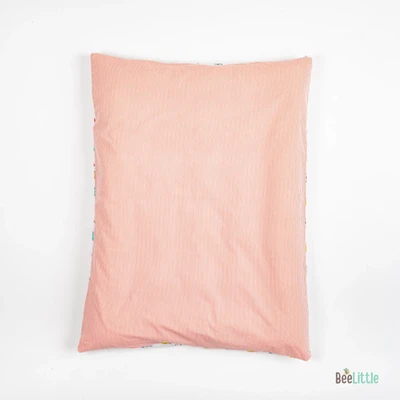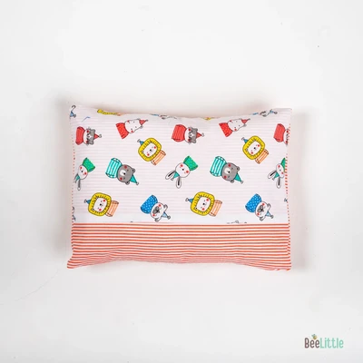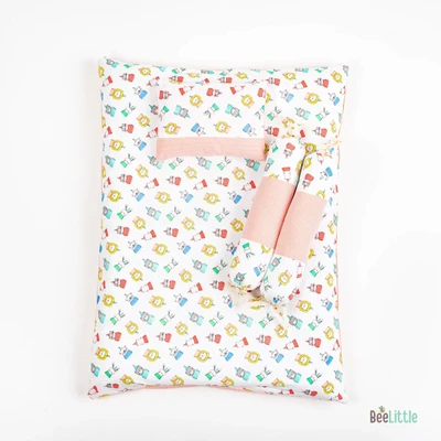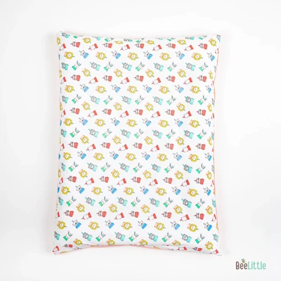 Quirky patterned bed in tight woven cotton filled with kapok silk (Illavam Panju). Naturally anti-microbial and hypoallergenic baby mattress has allover print on both sides. Comes with a pillow and a couple of bolsters, ideal for newborns and infants.