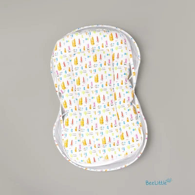 Newborn sleeping mattress with mosquito net is made from cotton material and stuffed with anti-allergenic polyfiber filling. Easy double zipper to build-up the net with two arched frame for support that holds the net wide and to keep it down when required.
