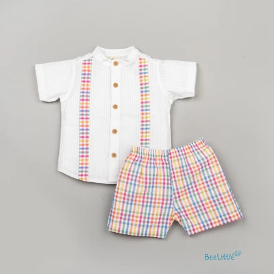 Beelittle shirt and shorts set is a charming and practical outfit. Featuring a distinctive button-down front placket, making it easy to dress your little one. Crafted from soft, breathable fabric, this shirt ensures maximum comfort and freedom of movement. The elastic waistband shorts allow for quick diaper changes, making this versatile set both functional and adorable.