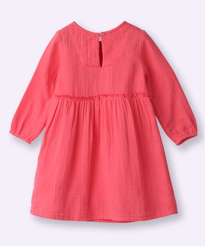 What's a baby outfit without a touch of adorable flair? Our woven frill frock comes adorned with charming frills, adding a whimsical charm that's simply irresistible. Whether it's a special occasion or a casual day out, this frock promises to make every moment as precious and adorable as your little one.