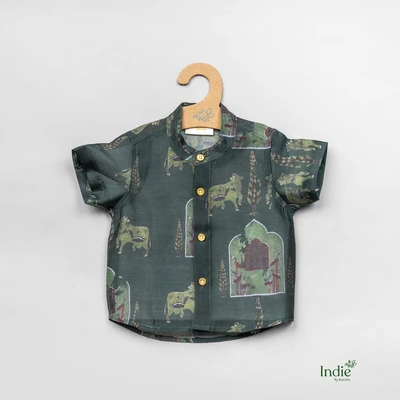 Silver Elephant with Golden Heart Embroidered Green Volt Shirt
