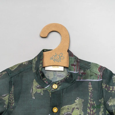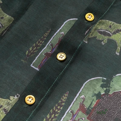 Silver Elephant with Golden Heart Embroidered Green Volt Shirt