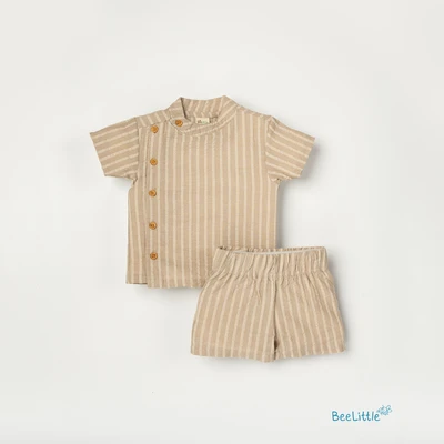 Beelittle side placket shirt and shorts set is a charming and practical outfit. Featuring a distinctive button-down side placket, making it easy to dress your little one. Crafted from soft, breathable fabric, this shirt ensures maximum comfort and freedom of movement. The elastic waistband shorts allow for quick diaper changes, making this versatile set both functional and adorable.