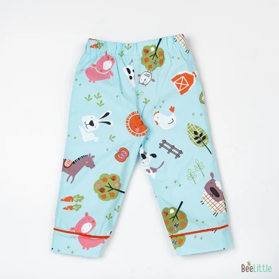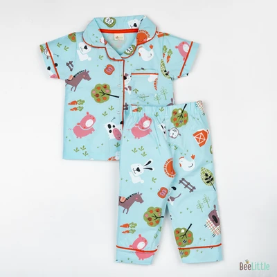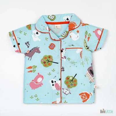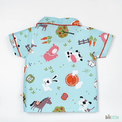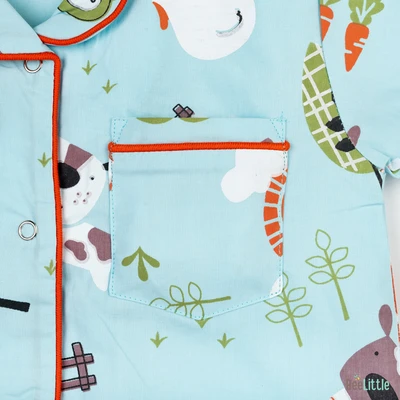 Our Pyjama sets offer comfort and style for your little one's restful night's sleep. Each set includes a short-sleeve button-up top with a classic collar and chest pocket, finished with contrasting piping. The matching pants feature an elastic waistband and piped cuffs. Made from soft, breathable fabric, they are gentle on baby's skin and are perfect for year-round wear.
