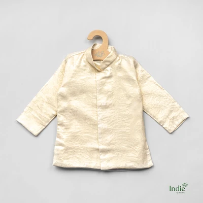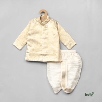 Fawn Metallic Tissue Kurta With Dhoti