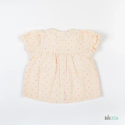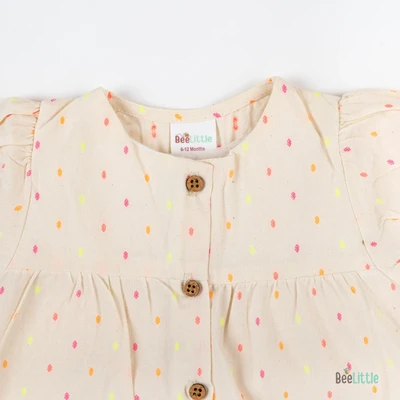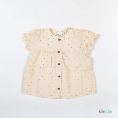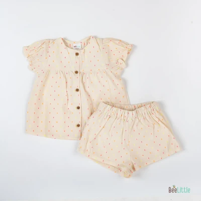 Solid Co-ordinate set of woven designed top & shorts. Figured with gathered yoke line seam, puff-sleeves cuffed with trouble-free elastication and front open neckline fastened with buttons. Coupled with regular shorts of concealed elastication and slip on closure.