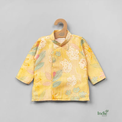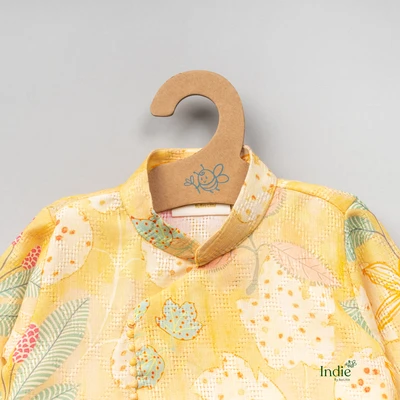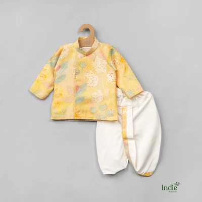 Floral Embroidered Golden Kurta With Dhoti