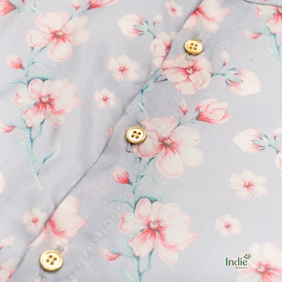 Floral Printed Grey Organza Shirt