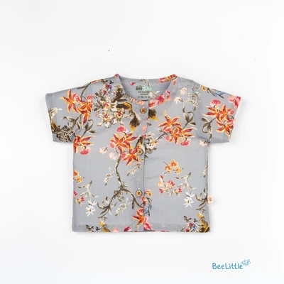 Mul Mul top and bottom set is the perfect blend of style and comfort. Featuring a mandarin collar, half sleeves, and vibrant ethnic print, the shirt is made with soft and breathable Mulmul fabric. The matching solid cotton shorts complete the look with a concealed elasticated waistband for a comfortable fit, creating an effortless outfit that's perfect for any occasion.