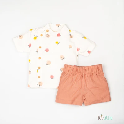 Beelittle side placket shirt and shorts set is a charming and practical outfit. Featuring a distinctive button-down side placket, making it easy to dress your little one. Crafted from soft, breathable fabric, this shirt ensures maximum comfort and freedom of movement. The elastic waistband shorts allow for quick diaper changes, making this versatile set both functional and adorable.