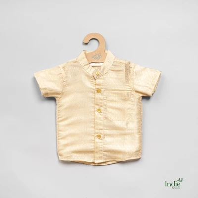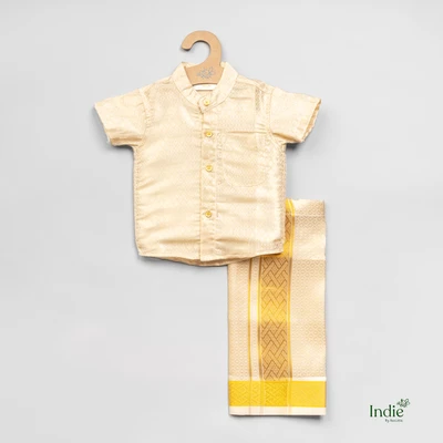 Gold Jacquard Shirt With Dhoti