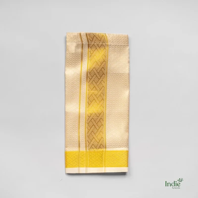Banaras Patched Yellow Shirt And Dhoti