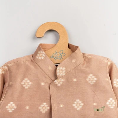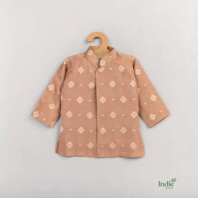 Peach Silk Metallic Tissue Kurta With Dhoti
