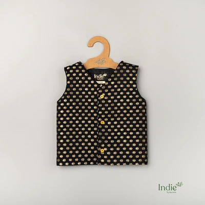 Golden Butta With Black Banaras V-Neck Jabla And Panjakajam