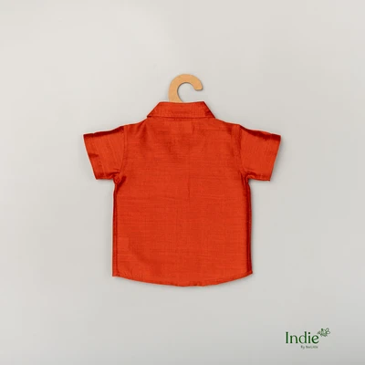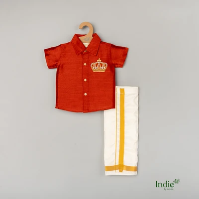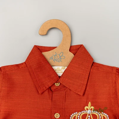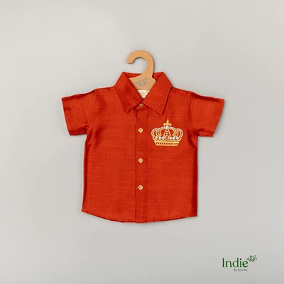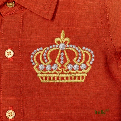 Golden Crown with Gems Embroidered Cadmium Red Shirt