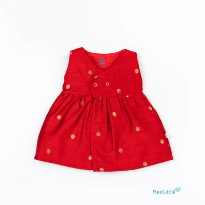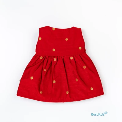 Golden Butta Embroidered Red Snap Button Kimono Frock