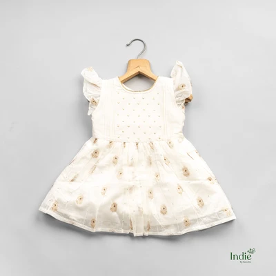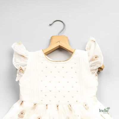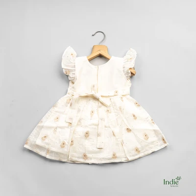 Golden Flower Cap Sleeve Dress With Tie-Back