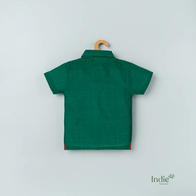 Green Flora Kalamkari Shirt With Checked Dhoti Set