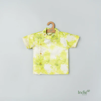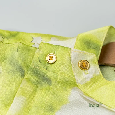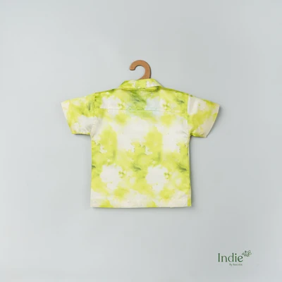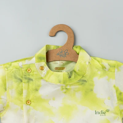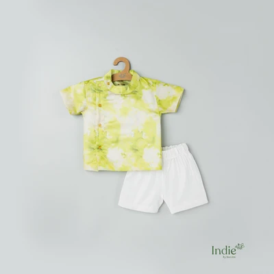 Green Tie And Dye Side Placket Shirt With White Shorts