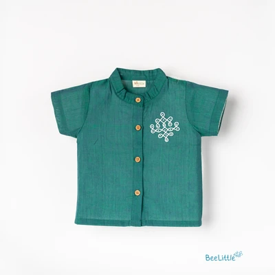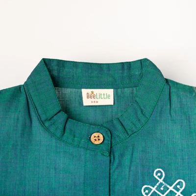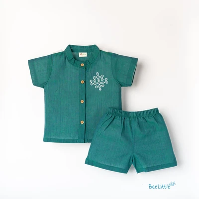 Muslin top and bottom set is the perfect blend of style and comfort. Featuring a Chineese collar, half sleeves, and vibrant ethnic print, the shirt is made with soft and breathable Muslin fabric. The matching solid cotton shorts complete the look with a concealed elasticated waistband for a comfortable fit, creating an effortless outfit that's perfect for any occasion.