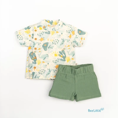 Beelittle side placket shirt and shorts set is a charming and practical outfit. Featuring a distinctive button-down side placket, making it easy to dress your little one. Crafted from soft, breathable fabric, this shirt ensures maximum comfort and freedom of movement. The elastic waistband shorts allow for quick diaper changes, making this versatile set both functional and adorable.