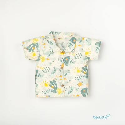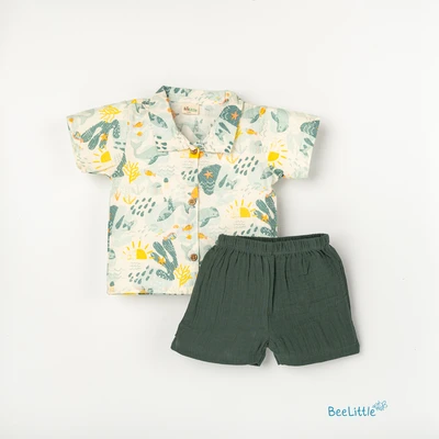 Muslin top and bottom set is the perfect blend of style and comfort. Featuring a Collar, half sleeves, and vibrant ethnic print, the shirt is made with soft and breathable Muslin fabric. The matching solid cotton shorts complete the look with a concealed elasticated waistband for a comfortable fit, creating an effortless outfit that's perfect for any occasion.