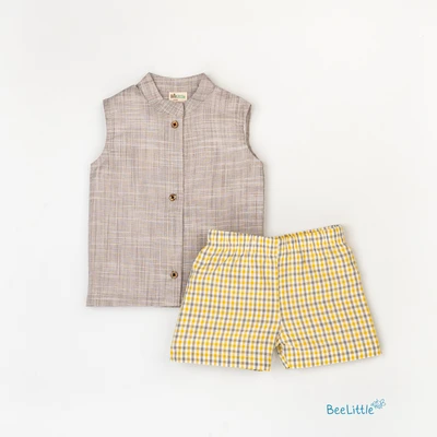 Elevate your little one's style for any occasion with Beelittle's charming Shirt and shorts set!! Crafted with care from pure organic cotton, these top and bottom sets offer both breathability and softness, ensuring your child's comfort all day long. Whether it's a special day or a casual evening stroll, these Co-ords add a touch of sophistication to your tiny tot.