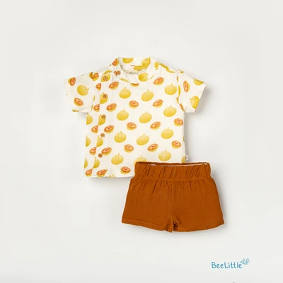 Beelittle side placket shirt and shorts set is a charming and practical outfit. Featuring a distinctive button-down side placket, making it easy to dress your little one. Crafted from soft, breathable fabric, this shirt ensures maximum comfort and freedom of movement. The elastic waistband shorts allow for quick diaper changes, making this versatile set both functional and adorable.