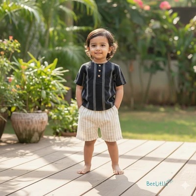 Mul Mul top and bottom set is the perfect blend of style and comfort. Featuring a mandarin collar, half sleeves, and vibrant ethnic print, the shirt is made with soft and breathable Mulmul fabric. The matching solid cotton shorts complete the look with a concealed elasticated waistband for a comfortable fit, creating an effortless outfit that's perfect for any occasion.