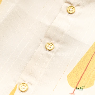 Leaf Printed Off-White Organza Shirt With Dhoti