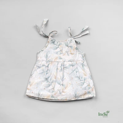 Leaf Printed White Tie-Up Dress
