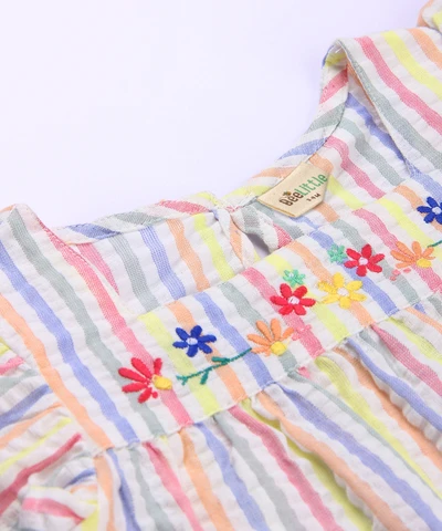 What's a baby outfit without a touch of adorable flair? Our woven frill frock comes adorned with charming frills, adding a whimsical charm that's simply irresistible. Whether it's a special occasion or a casual day out, this frock promises to make every moment as precious and adorable as your little one.