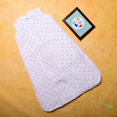 All over printed sleeping sac designed in order to make sure the little foots are kept warm. Sleeveless sac is secured with zip closure initiated from bottom of the sac drawn towards the finely finished neckline.