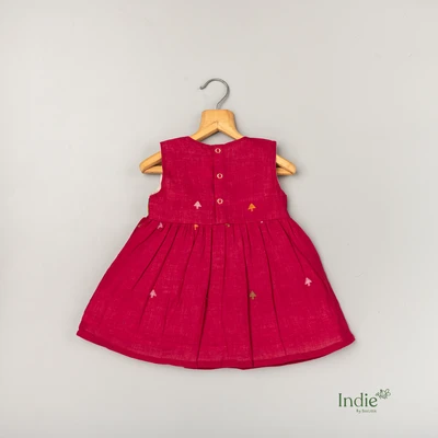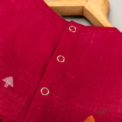 Maroon Butta Jamdani With Kalamkari Yoke Frock