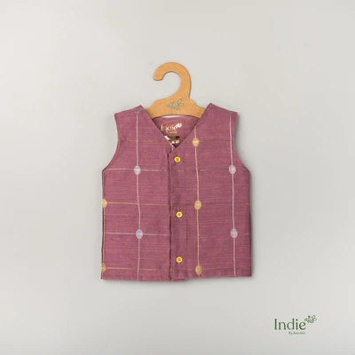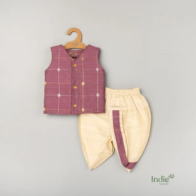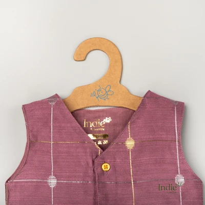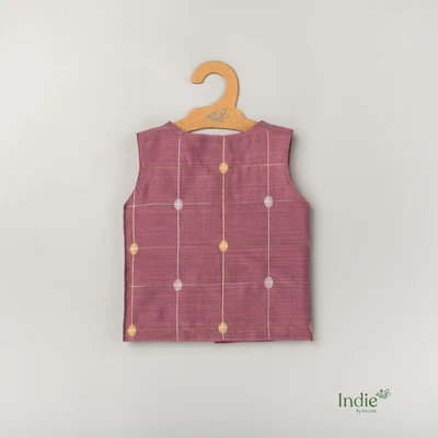 Mauve With Checked Zari V-Neck Jabla And Panjakajam