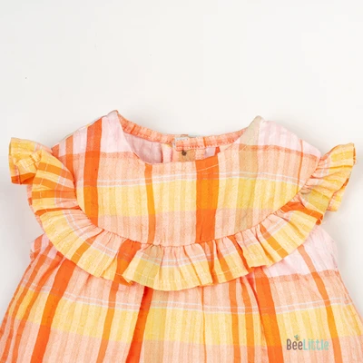 What's a baby outfit without a touch of adorable flair? Our woven frill frock comes adorned with charming frills, adding a whimsical charm that's simply irresistible. Whether it's a special occasion or a casual day out, this frock promises to make every moment as precious and adorable as your little one.