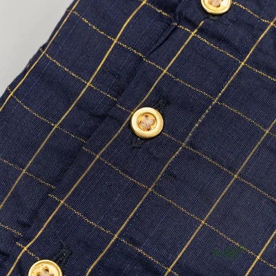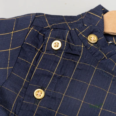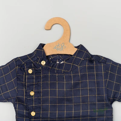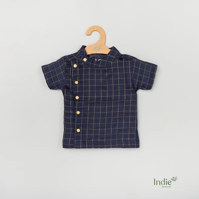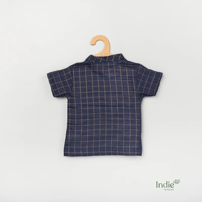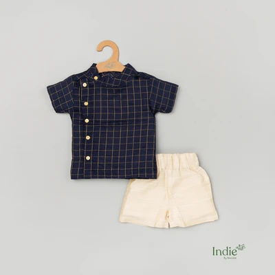 Navy Zari Checks Side Placket Shirt And Shorts