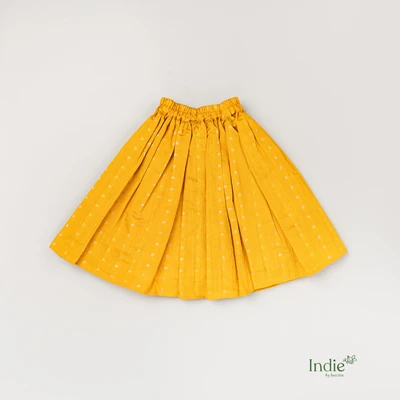 Off White And Mustard Raw Silk Scalloped Top And Skirt
