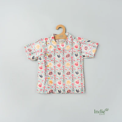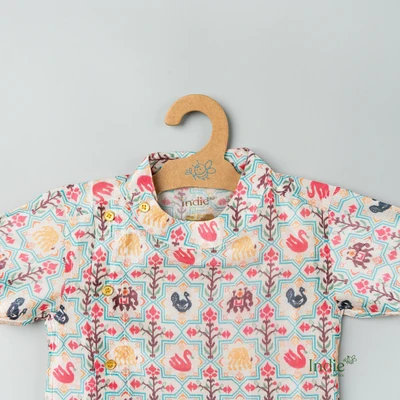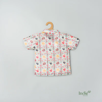 Brown Pichwai Side Placket Shirt With Sandal Shorts