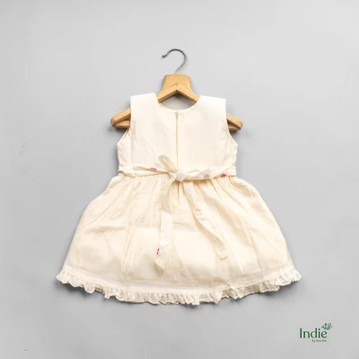 Offwhite Orange Elephant Embroidered Dress With Tie-Back