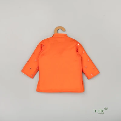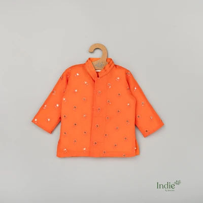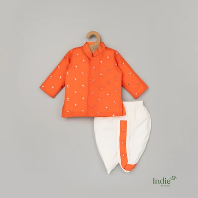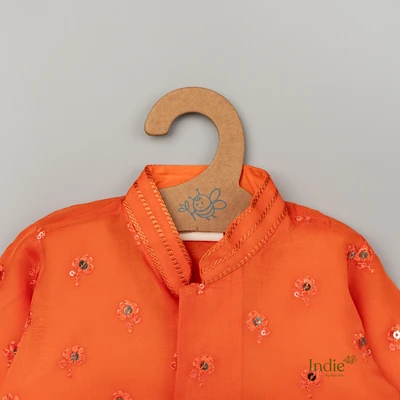 Orange Sequence Work Short Kurta With Dhoti