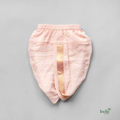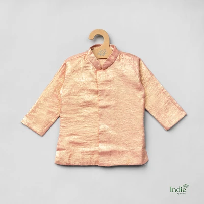 Peach Silk Metallic Tissue Kurta With Dhoti